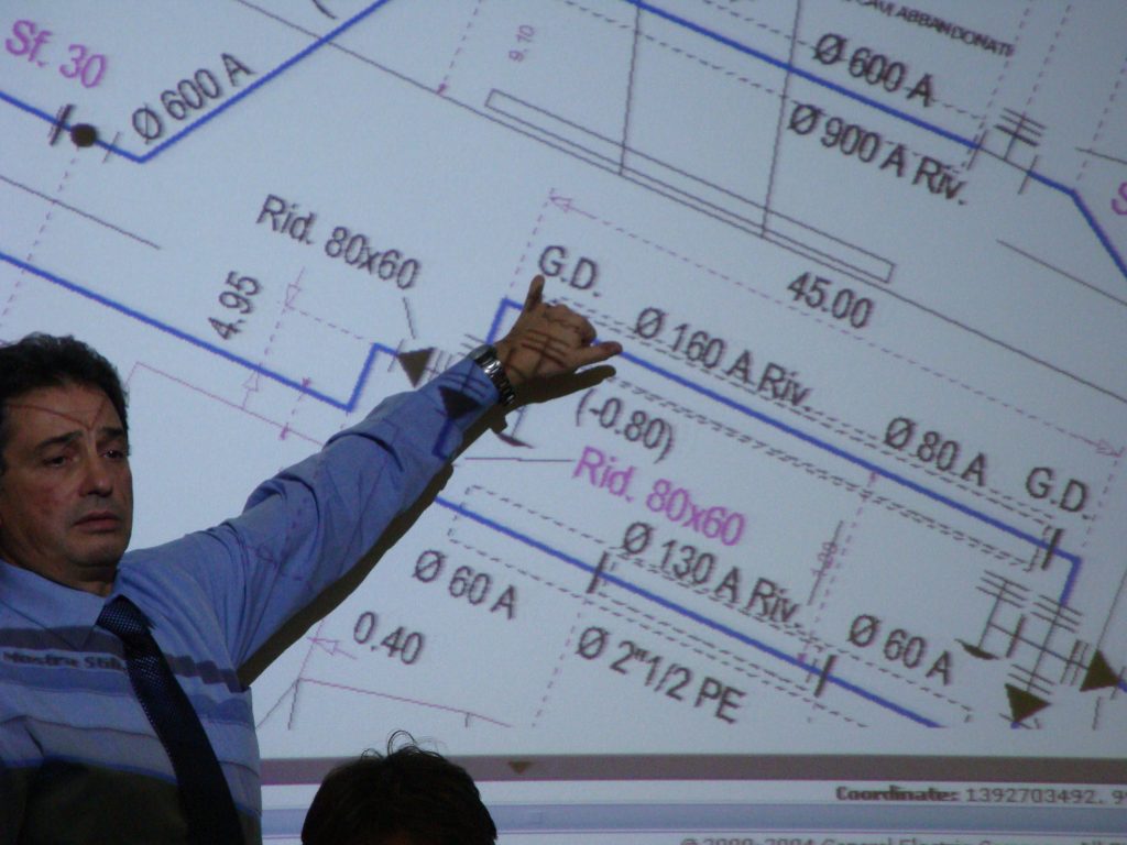 Druga, meni MNOGO važnija stvar, bila je poseta GIS centru i tamo sam proveo 2 i po sata ! Manje sam imao prilike da popričam sa ljudima koji tu rade jer su nas posle kraće posete samom odeljenju odveli u prezentacionu salu i onda smo gledali uživo on-line korišćenje sistema na projektoru. Ja sam ih jedini gnjavio sa pitanjima jer sam imao i šta da ih pitam za raziliku od nekih mojih kolega koji se nisu ranije susretali sa nikakvim GIS-om. Kao prvo Italijani su razvili sistem na ESRI platformi. Prezentator nije umeo da mi odgovori šta i kako već me je uputio na njihove IT likove koji su trebali da dođu ali se na moju veliku žalost nisu pojavili (to je izgleda neko univerzalno ponašanje IT-jevaca u svetu ?). Ostao sam uskraćen za te informacije i malo razočaran. Sve u svemu, oni su to razvijali od 1992 do 2000. Sistem koristi do 100-tinak ljudi aktivno. Imaju jake servere i mrežu a pristup je organizovan po sistemu logovanja tj. prava korisnika. Njihove mape izgledaju kao što ja volim da kažem “CAD-olike”…