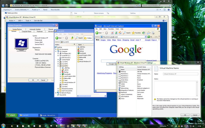 Jutros sam skinuo i instalirao “Windows XP Mode” za Windows 7 64bit. Radi lepo, znači imate potpuno funkcionalan 32bitni WinXP ako vam za nešto treba i ne možete bez njega (stare video igre, programi, programiranje, itd.). Ovde imate sve za download http://www.microsoft.com/windows/virtual-pc/download.aspx Znači instalira se prvo update za Win7 (Windows6.1-KB958559-x64.msu) a to je zapravo “Microsoft … Read more